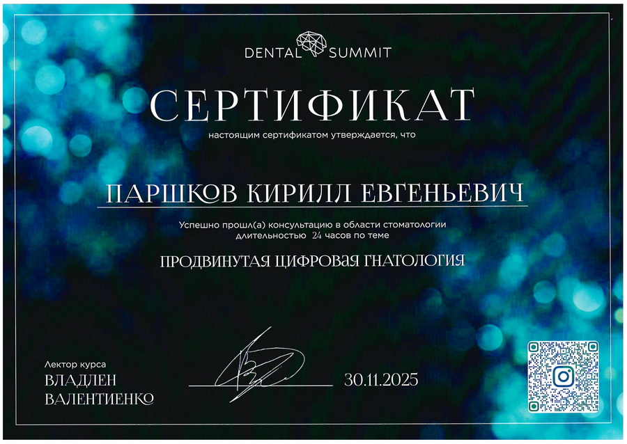 2025 г. – «Продвинутая цифровая гнатология» (В. Валентиенко).